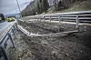 Autovernet langs nordgående løp er også ødelagt i omlag 50 meter, og lastebilen har store skader i fronten. Det er også en del skader på autovernet i sørgående løp, hvor metallstolpene til bakken er revet vekk over en del meter.