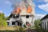 ØVRE EIKER: Nødetatene rykket tirsdag ettermiddag ut til Stasjonsgata i Hokksund etter melding om brann i et hus. Da var da full fyr på stedet da de ankom.