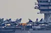 ÅPEN COCKPIT: Et av jagerflyene på dekk så ut til å bli klargjort for takeoff i ytre Oslofjord.FOTO: ALEXANDER JANSEN / DRM24