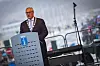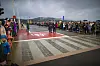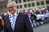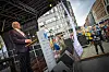 TALE: Ordfører Kjell Arne Hermansen sa noen velvalgte ord på Bragernes Torg før turen gikk opp på bybrua, hvor tusenvis av tilskuere med paraply ventet tålmodig.