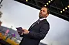 Til slutt dukket Jonas Fjeld opp på scenen, og samtidig bøttet regnet ned - det er jo tross alt mannen med låta «Drammen i regn».