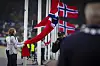 Ordføreren var åpenbart fornøyd med oppholdsvær og kunne gå tørrskodd i bare 17. mai-dressen over elva.