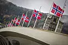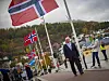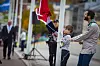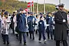 Mens paraden flyttet seg mot midten av brua sørget lokale speidere for å heise flaggene til topps.