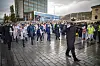 Strømsgodset musikkorps ledet an i den høytidelige seremonien, og fikk heldigvis marsjere i oppholdsvær.