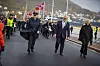 Strømsgodset musikkorps ledet an opp over brua, bak ordfører, og politistasjonssjef.