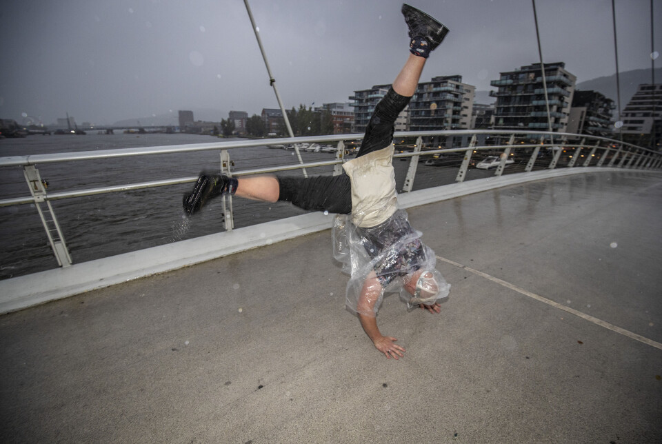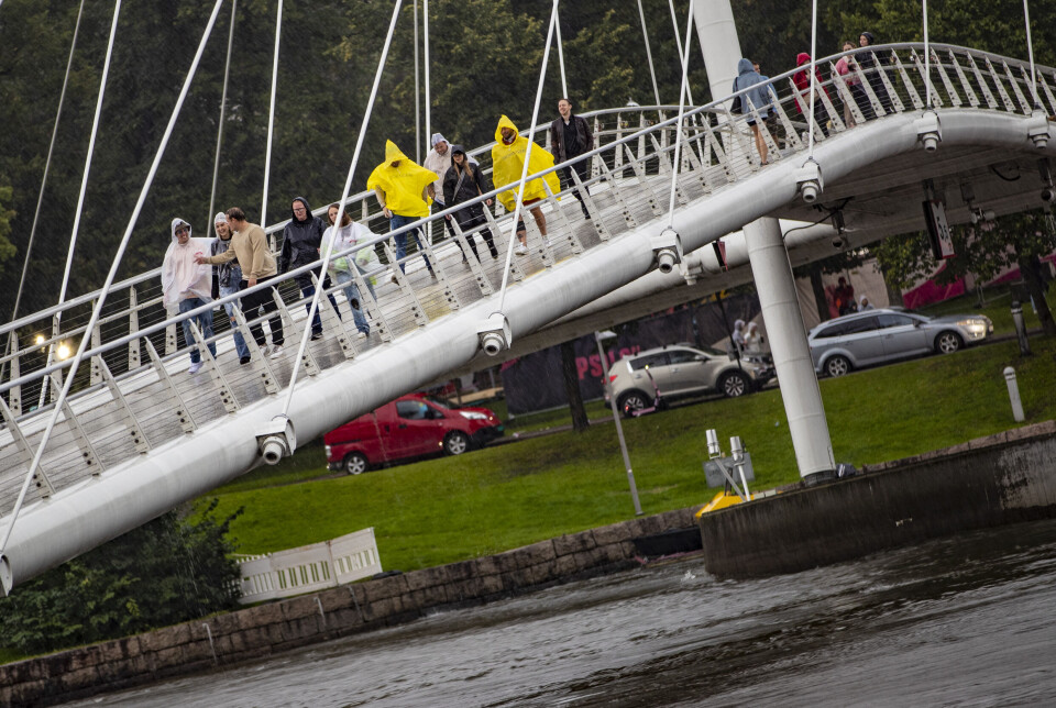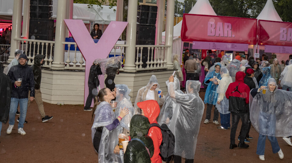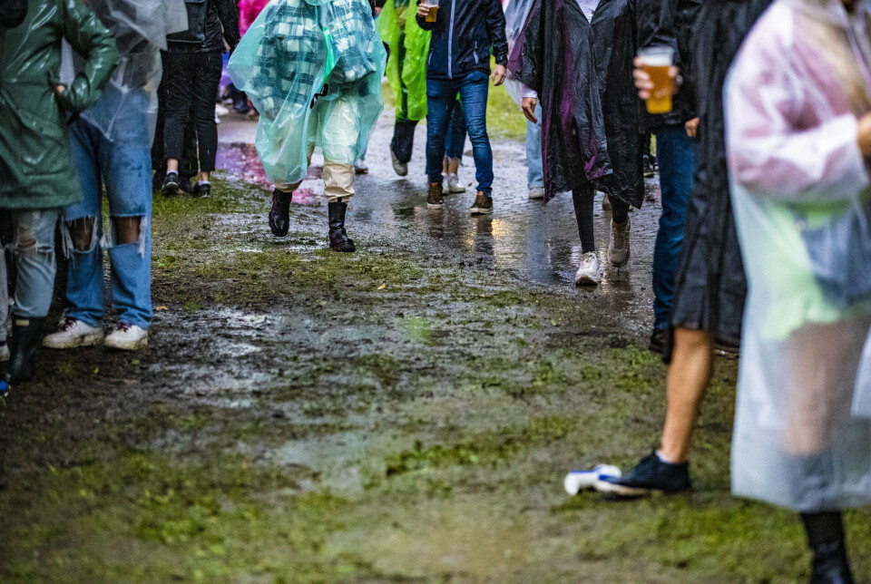 I konsertpausen som fulgte var det stor trengsel under trær og annet som kunne skjerme for regnet i byparken - og ifølge værmeldingene skal styrtregnet fortsette frem til utpå natta.