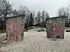 Påskriften «Jøder» er blant annet noe som går igjen på skadeverket, blant annet i form av tagging på benker, apparater og den ligge bygningen ved brua inn til øya.