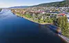 Det er politisk flertall for prosjektet, som innebærer en betydelig forandring langs elvebredden. Nederst foran totalt syv bygg med leiligheter er det planlagt grøntområde og gangvei.