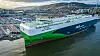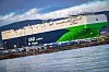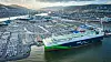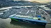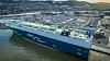 DRAMMEN: Rekordskipet sjøsatt i mai 2025 i Shanghai, lå fredag ettermiddag ankret opp for lossing på den nye, 340 meter lange dypvannskaia, «Kattegat-kaia», som ble ferdigstilt i fjor for å kunne betjene større og flere bilbåter samtidig.