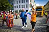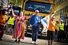 Sjef i Drammen Pride Angelica Bråten ledet an i toget sammen med drammensordfører Kjell Arne Hermansen og en maskert superhelt.