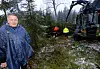 Etter trærne har fått godkjentstempel for å kunne tjenestegjøre som julegran, går kommunens skogsarbeidere til verks med motorsag, kran og fraktebil.