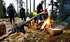 Akkompagnert av vinterens første snøfall kunne ordfører Tore Opdal Hansen overvære sin 11. julegranfelling i drammensmarkas dype skoger mandag.