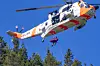 LUFTIG REDNINGSAKSJON: En paraglider krasjlandet på toppen av Solbergåsen, og blir her heist opp av Seaking-helikopteret for transport til sykehus. (FOTO: ALEXANDER JANSEN)
