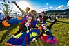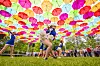 PARAPLYHIMMEL: Byens siste kunst-installasjon ble innviet under byens 208-årsdag, med dansende cheerleadere fra Sirens Drammen. (FOTO: ALEXANDER JANSEN)