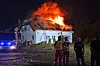 FULL OVERTENNING: Et ubebodd hus i Lier ble totalskadd i brann en helgenatt i juni. (FOTO: JOAKIM FJELDLI / DRM24)