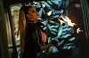FLAMMENDE HALLOWEEN-SHOW: Et underholdningsbidrag utenom det vanlige utenfor Z Nightclub på Halloween. (FOTO: ALEXANDER JANSEN)
