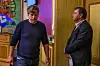 ISFRONT: Temperaturen var på frysepunktet mellom Høyres ordførerkandidat Fredrik Haaning og MDG's påtroppende varaordfører for nye Drammen, Ståle Sørensen. (FOTO: NILS J. MAUDAL)