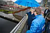 VALGKAMPINNSPURT I PARAPLYVÆR: Erna Solberg besøker Drammen, ledsaget av Høyres ordførerkandiat Fredrik A. Haaning. (FOTO: ALEXANDER JANSEN)