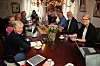 FORMANNSKAPSMØTE I SPISESTUA: Avtroppende Øvre Eiker-ordfører Ann Sire Fjerdingstad avholdt sitt siste formannskapsmøte i historiske omgivelser - sitt eget hjem, Falchegården i Hokksund, hvor tidenes første formannskapsmøte i kommunen også ble holdt. (FOTO: ROY HANSEN / EIKERNYTT.NO)