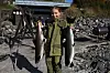 LAKSE-LYKKE: Selma Hegna Dybvik hadde aldri fisket laks før, men fikk full pott under årets siste dag med fiske i Hellefossen. (FOTO: ROY HANSEN / EIKERNYTT.NO)
