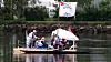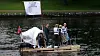 En bitteliten påhengsmotor skal tilsynelatende stå for fremdriften, i tillegg til vannstrømninger, vind og en god porsjon flaks - mens et provisorisk seil med påskriften «en flåte - ett mål - slottsfjellet» trolig er heist mest for syns skyld.