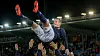PÅ GULLSTOL: Øyvind Storflors siste 24 minutter vil bli husket med stor glede for Strømsgodset-fansen, og lagkameratene hyllet trønderen med tre kast i lufta foran Godset-unionen etter kampen.ALLE FOTO: SIMEN NÆSS HAGEN