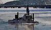 Statsnetts spesialbåt Elektron strevde med isen på Drammenselva. Det er ytterst sjelden dette hovedløpet fryser til fordi det er sterk strøm der. Men nå har de blå tatt et kaldt grep.
