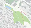 I perioden brua er stengt, blir gangtraseen gjennom området også stengt. I kartutsnittet under er den stengte gangtraseen markert.