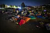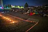 Det var hyggelig stemning under stjerneklar himmel på Strømsø med film, gratis brus og popcorn.